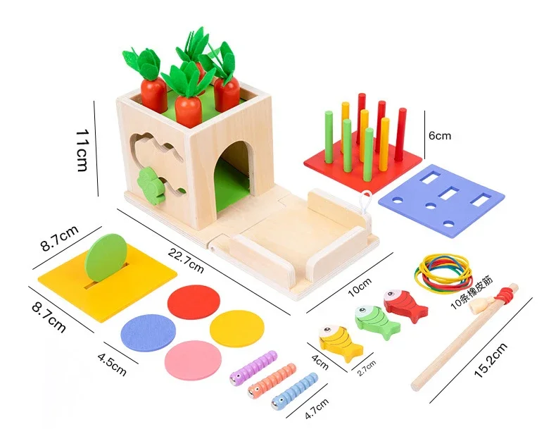 8 in 1 Montessori Permanence Box Carrots Toys Child Wooden Shape Sorting & Matching Educational Toys for Kid Over Age 1-Year-Old