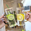 Beautiful Design High Quality Transparent drinking Glass with Straw