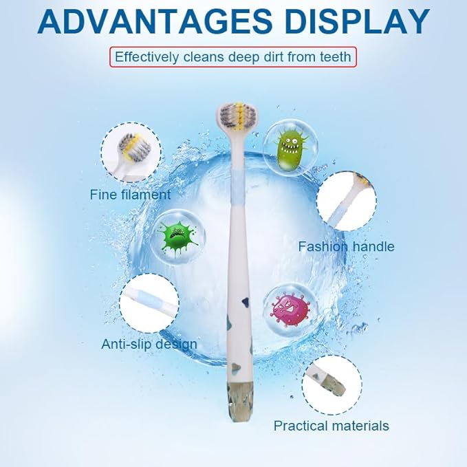 No more struggling to clean hard-to-reach areas! The three-sided bristle design wraps around your teeth, giving you thorough cleaning from every angle. π¦· Just one motion covers more surface area for maximum efficiency.